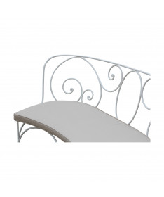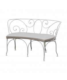 Banc modèle Malmaison en fer forgé, assise et dossier en arrondi, finition thermolaqué blanc.
