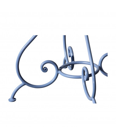 Table ronde modèle Beaulieu en fer forgé, à 4 pieds et plateau en tôle perforée type cannage, finition thermolaqué blanc.